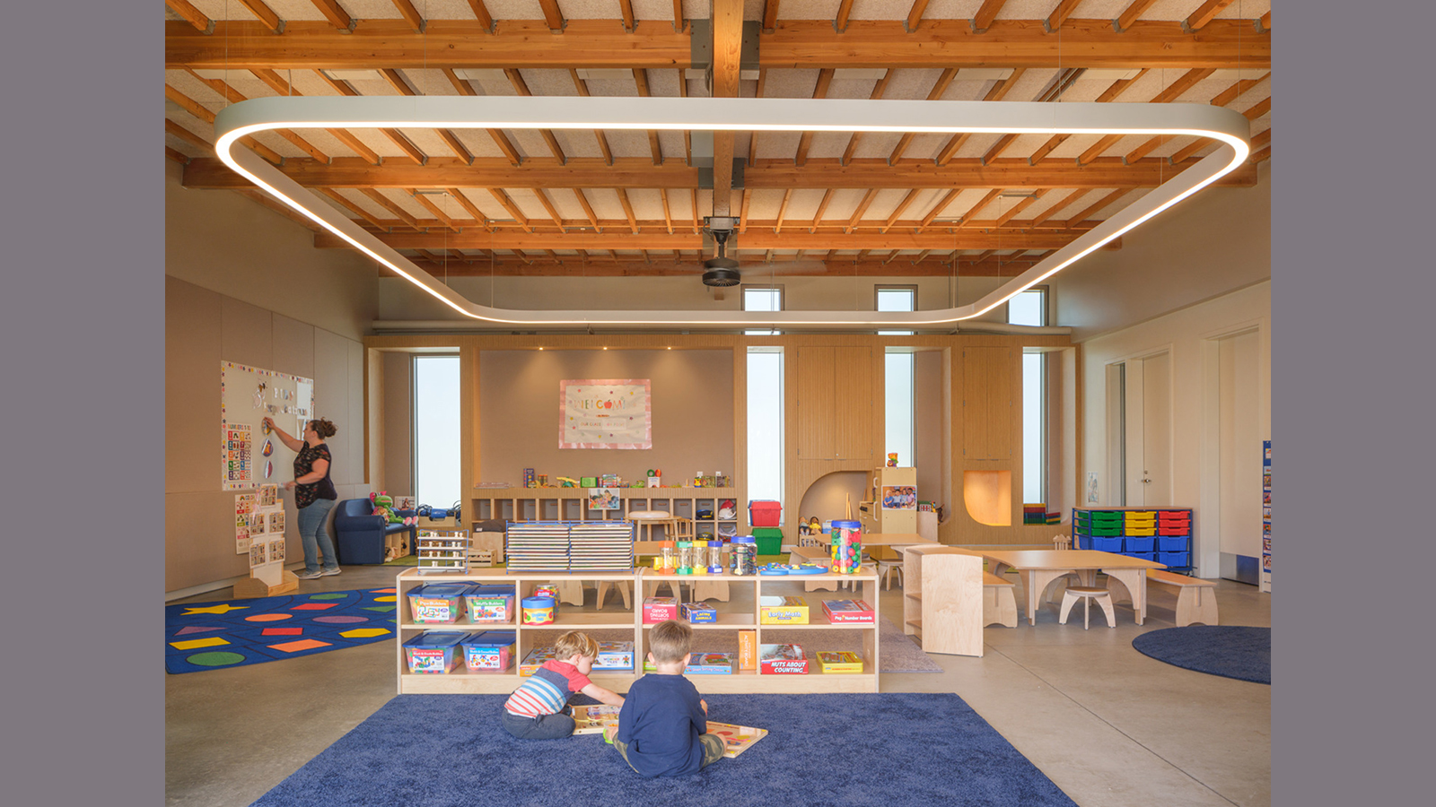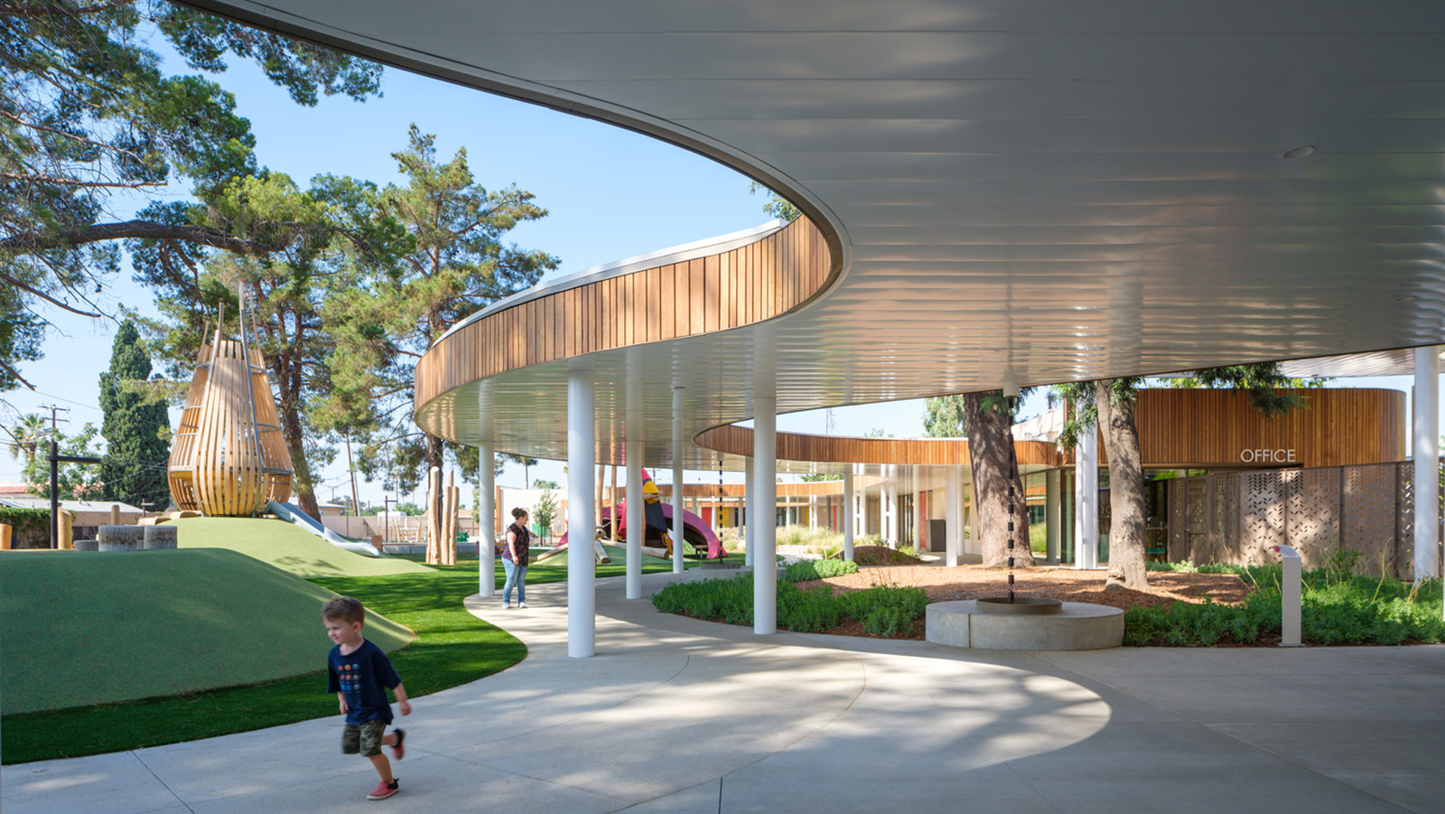 The Cardinal Child Development Center has been recognized with a 2024 Outstanding Award from Learning by Design and featured in Architectural Record for its sustainability-driven approach, organic and fluid form, and thoughtful integration of architecture, landscape, and early childhood learning.